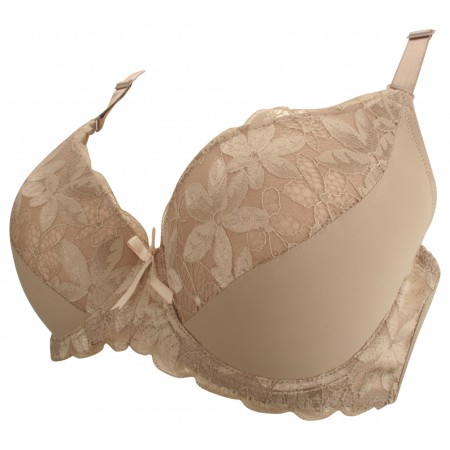 Padded, underwired bra with flower lace detail imported by us at Zest. This beautiful microfibre bra is rear fastening & has removable adjustable should straps which could be substituted for clear straps if required. Please note, these bras were not originally labelled in UK sizing & have been resized & a sticker has been applied to the tag with the correct UK size. Fabric content is 80% nylon & 20% elastane. Hand wash recommended.