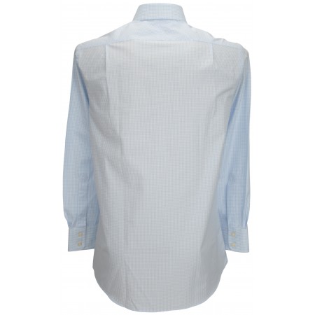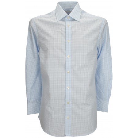 A pure 100% cotton, slim fit shirt made for a British clothing retailer, specialising in tailored menswear. This shirt has a curved hem, regular classic collar with housing for your collarbones, split back yoke, pleats at the back of the shirt and long sleeves with single rounded cuffs with twin buttons. Sleeves are available in multiple lengths & sleeve length measurements are taken from the centre back to the ends of the sleeves in inches. Slim fit is trimmer at the waist than the Classic fit, and has slim sleeves and a more defined silhouette.