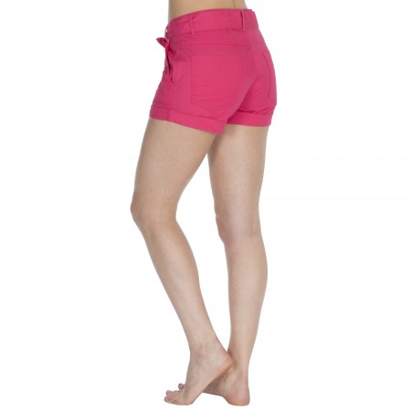 Ladies short pure cotton poplin shorts with tie belt by Causeway Bay. These mid rise shorts have 2 side pockets, 2 rear pockets, a self-tie belt, belt loops, a turn-up lower hem & fasten with a metal zip & single button. Measurement for a size 10 are inside leg 6cm, waist to hem 28cm & 24cm rise at centre front; larger sizes will be slightly more. Fabric content is 100% cotton. Machine washable.