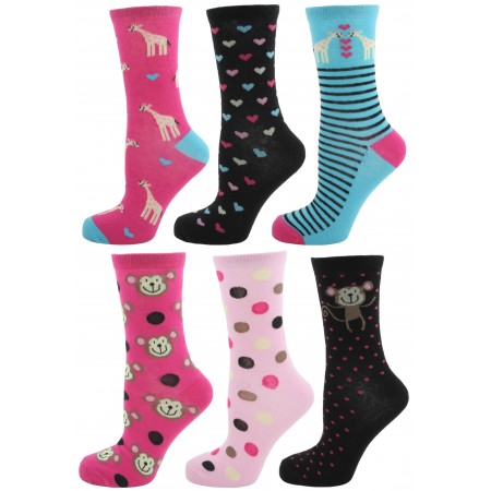 A 6 pack of ladies cotton rich socks by Zest. Designed in England, each 6 pack of socks contains 2 packs of 3 socks all in assorted designs. Fabric content is 78% cotton, 20% polyester & 2% elastane. Socks are sized for UK shoe size 4-8, EU size 37-42