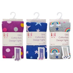 Pretty girls cotton rich design tights by i2i. These tights have added stretch for fit & comfort. Fabric content is 75% cotton, 20% polyester & 5% elastane. Machine washable.