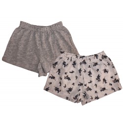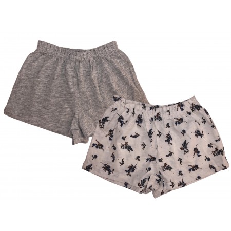 A pack of 2 cotton jersey shorts with an elasticated waist. Made for a very well know UK quality high street fashion store these shorts come in a variety of different colourways. Fabric content is 100% pure cotton except for the grey which has 5% viscose to give the marl appearance. Machine washable